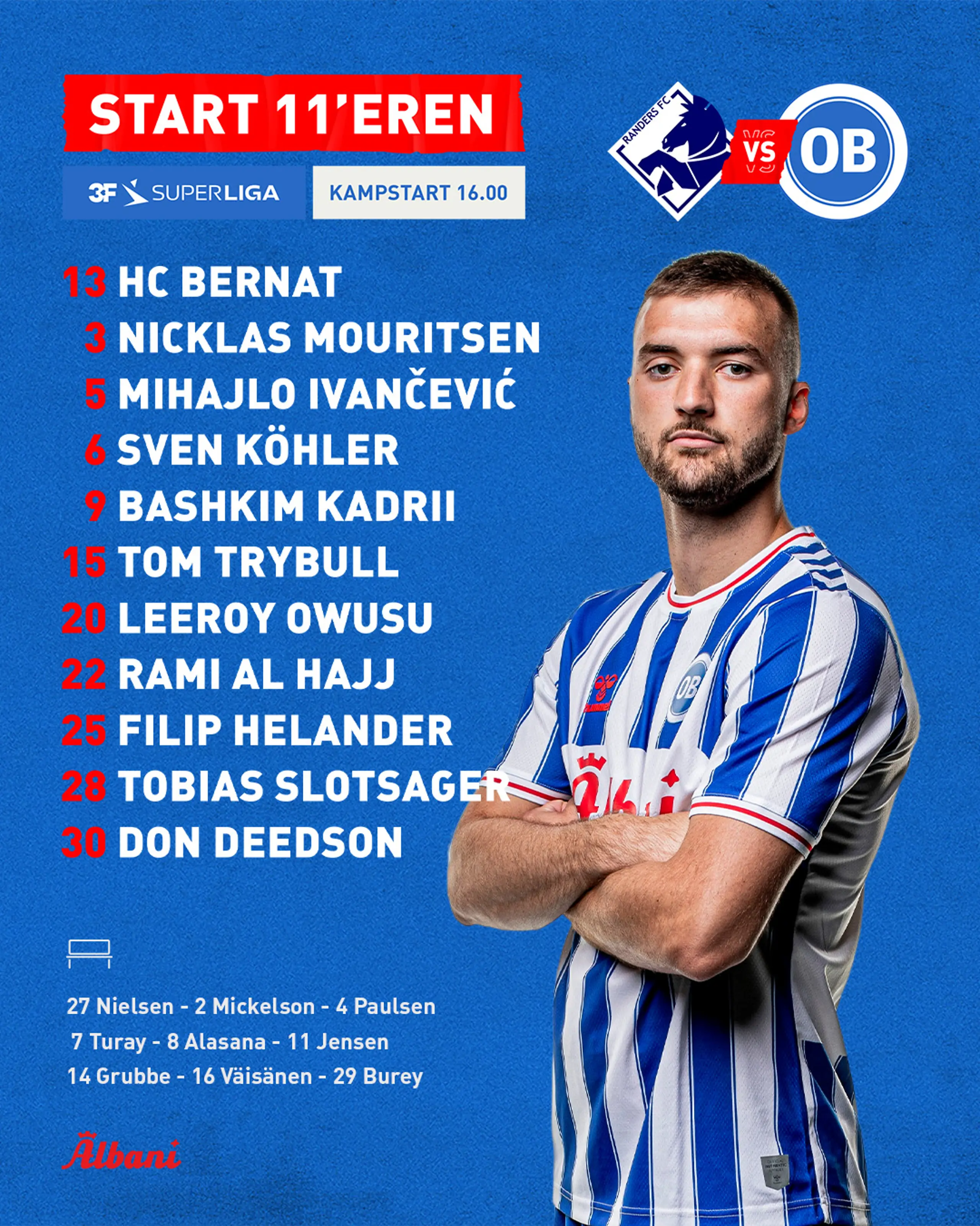 Sådan starter vi mod Randers FC 26.11.2023 13:59 Søren Krogh har udvalgt de 11 striber, der skal repræsentere striberne, når vi om en time går på banen mod Randers FC.