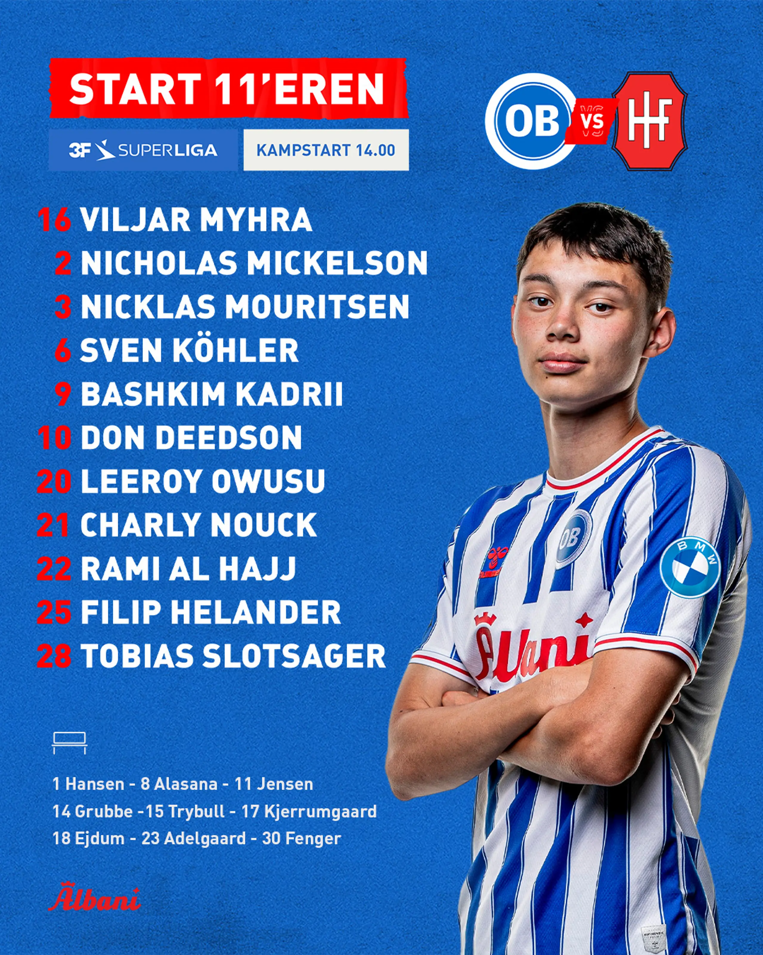 Sådan starter vi mod Hvidovre IF 28.04.2024 11:00 Solen skinner over Odense, og om en time skal der være fodbold på Nature Energy Park. Her er det de her 11 striber, der starter inde for OB. Flere nyheder 3F Superliga - Dejligt at være tilbage 23.11.2025 Kvinder Peer Lisdorf før sæsonens sidste A-ligakamp 21.11.2025 Nyhed Erfaren og kreativ Video- and Content Producer til OB’s kommunikationsafdeling 19.11.2025 Business Oplev OB fra VIP-siden - forkæl dig selv eller dine kolleger med en eksklusiv kampdag 19.11.2025