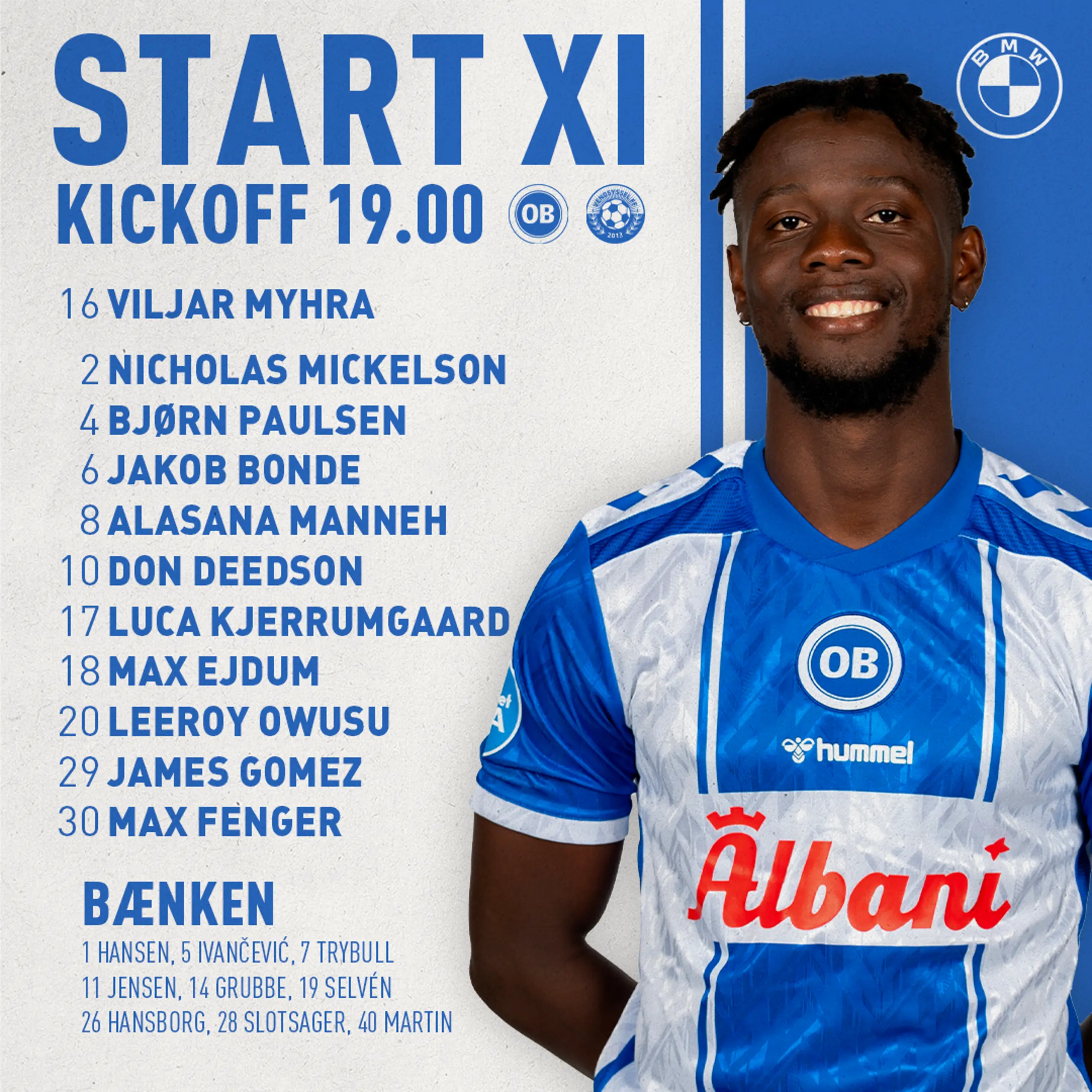 Sådan starter vi mod Vendsyssel FF 30.08.2024 16:00 Om en time går det løs på Nature Energy Park med fredagsfodbold, og det er sådan her, vi starter! Flere nyheder 3F Superliga Et point i vintervejret 24.11.2025 3F Superliga Sådan starter vi i Randers 24.11.2025 Nyhed Udsolgt klubaften 24.11.2025 3F Superliga Truppen til aftenens kamp i Randers 24.11.2025
