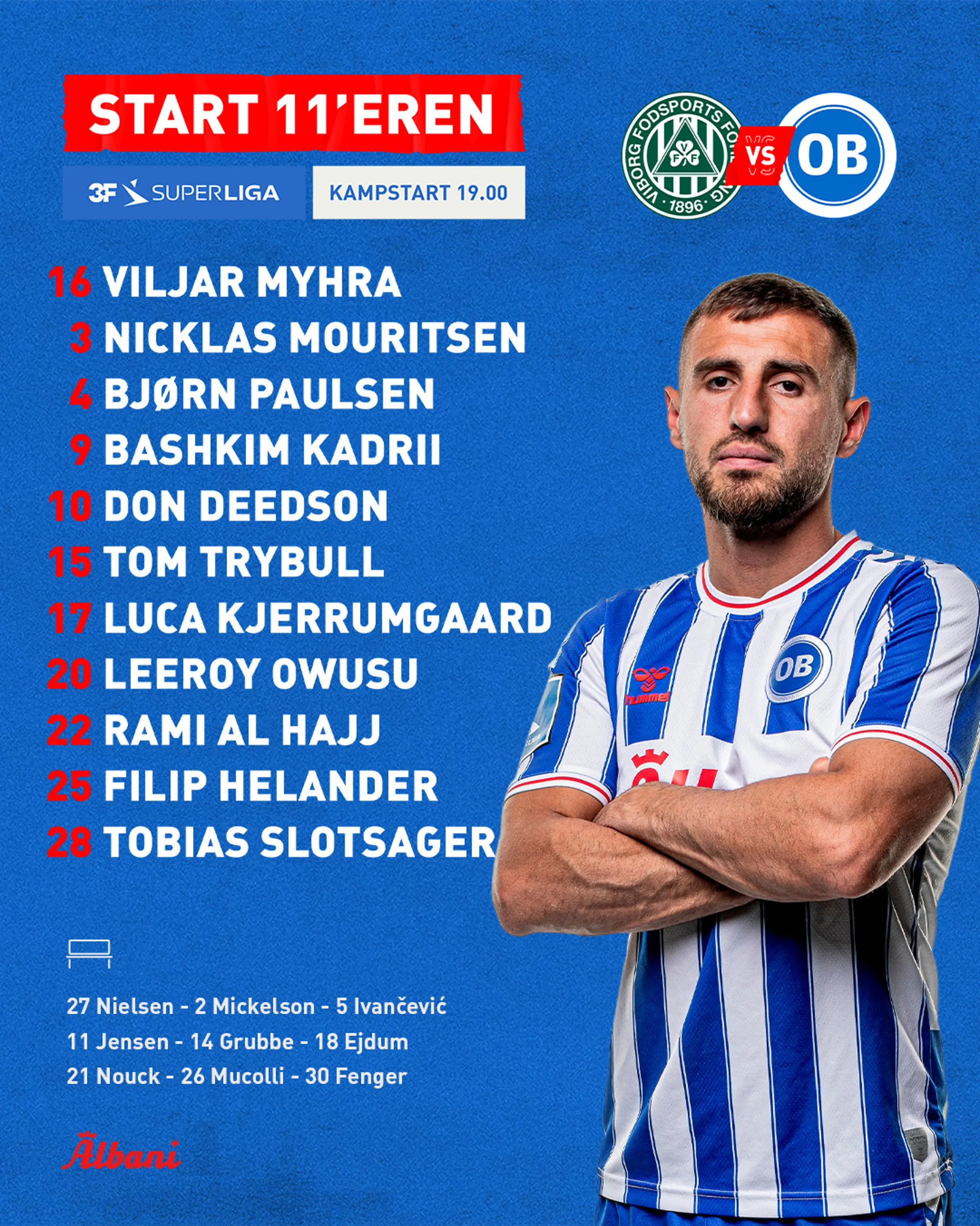 Disse 11 striber skyder foråret i gang! 16.02.2024 17:00 Om bare en time er ventetiden ovre, og der er atter stribet superligabold på programmet. Søren Krogh har peget på de 11, som starter opgøret mod Viborg FF kl. 19.00. Her er dagens start 11'er! Flere nyheder 3F Superliga - Dejligt at være tilbage 23.11.2025 Kvinder Peer Lisdorf før sæsonens sidste A-ligakamp 21.11.2025 Nyhed Erfaren og kreativ Video- and Content Producer til OB’s kommunikationsafdeling 19.11.2025 Business Oplev OB fra VIP-siden - forkæl dig selv eller dine kolleger med en eksklusiv kampdag 19.11.2025