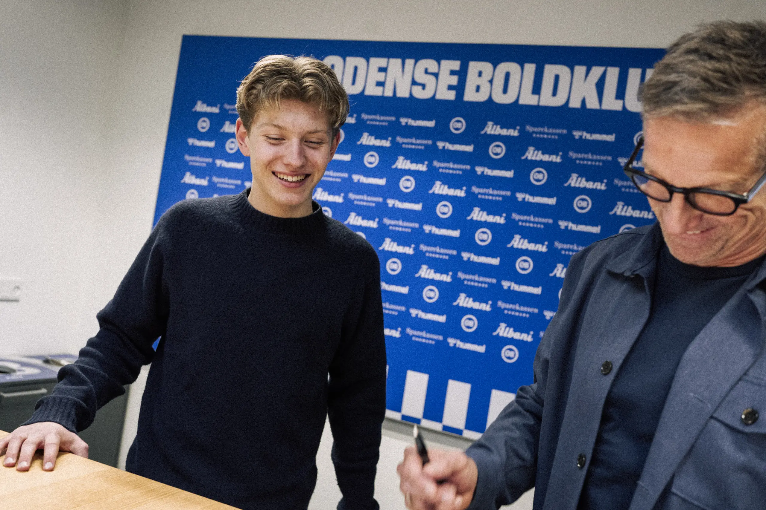 - Jeg er utrolig glad for det, og det er megafedt, at jeg nu har skrevet under på min første kontrakt. Jeg håber, at jeg en dag kan blive professionel fodboldspiller. Jeg synes, det betyder meget, at det lige er OB, jeg skriver den første kontrakt med. Jeg har altid spillet her, og klubben betyder også meget for mig. Det, synes jeg, er stort, siger Frederik Donslund og fortsætter: