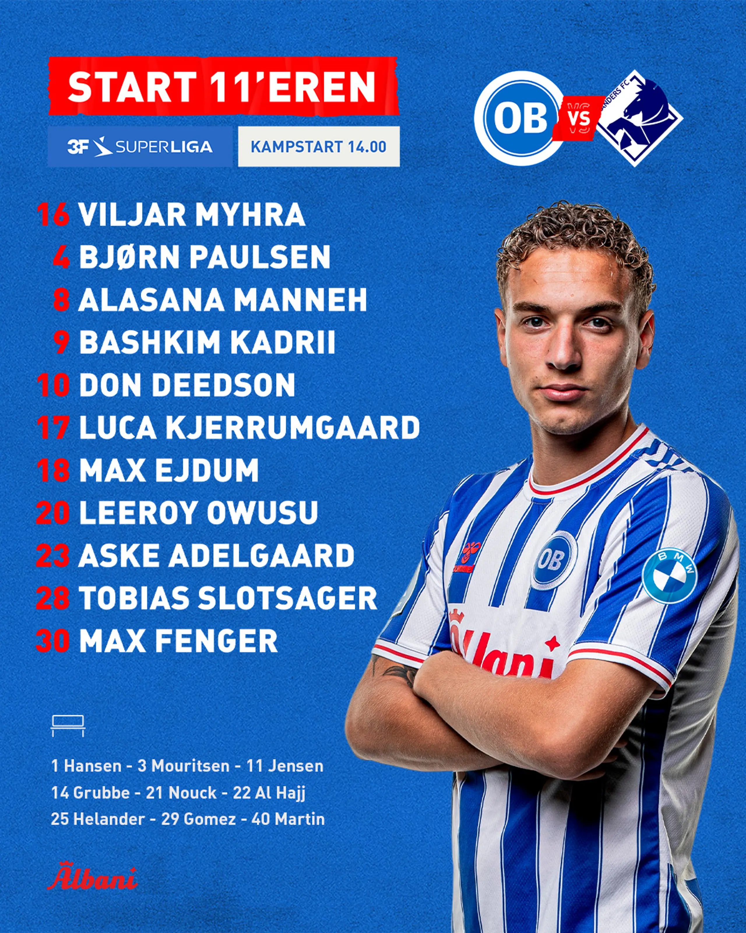 Sådan starter vi i sæsonens sidste hjemmebanekamp 19.05.2024 11:00 Om en time går det løs mod Randers FC for sidste gang i denne sæson på eget græs, og det er de her 11 striber, der starter inde for OB. Flere nyheder 3F Superliga - Dejligt at være tilbage 23.11.2025 Kvinder Peer Lisdorf før sæsonens sidste A-ligakamp 21.11.2025 Nyhed Erfaren og kreativ Video- and Content Producer til OB’s kommunikationsafdeling 19.11.2025 Business Oplev OB fra VIP-siden - forkæl dig selv eller dine kolleger med en eksklusiv kampdag 19.11.2025