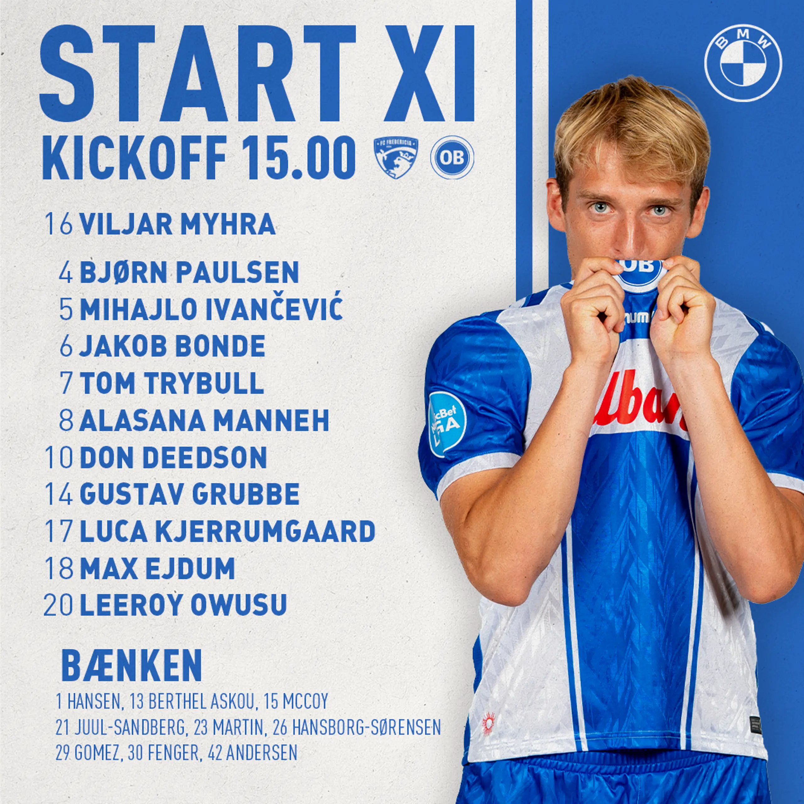 Sådan starter vi dagens kamp 03.11.2024 13:00 Et sandt topbrag står for døren i NordicBet Ligaen, når vi om en time møder FC Fredericia på Monjasa Park, og det er følgende 11 striber, der står klar til at kæmpe for klubben. Flere nyheder 3F Superliga Et point i vintervejret 24.11.2025 3F Superliga Sådan starter vi i Randers 24.11.2025 Nyhed Udsolgt klubaften 24.11.2025 3F Superliga Truppen til aftenens kamp i Randers 24.11.2025