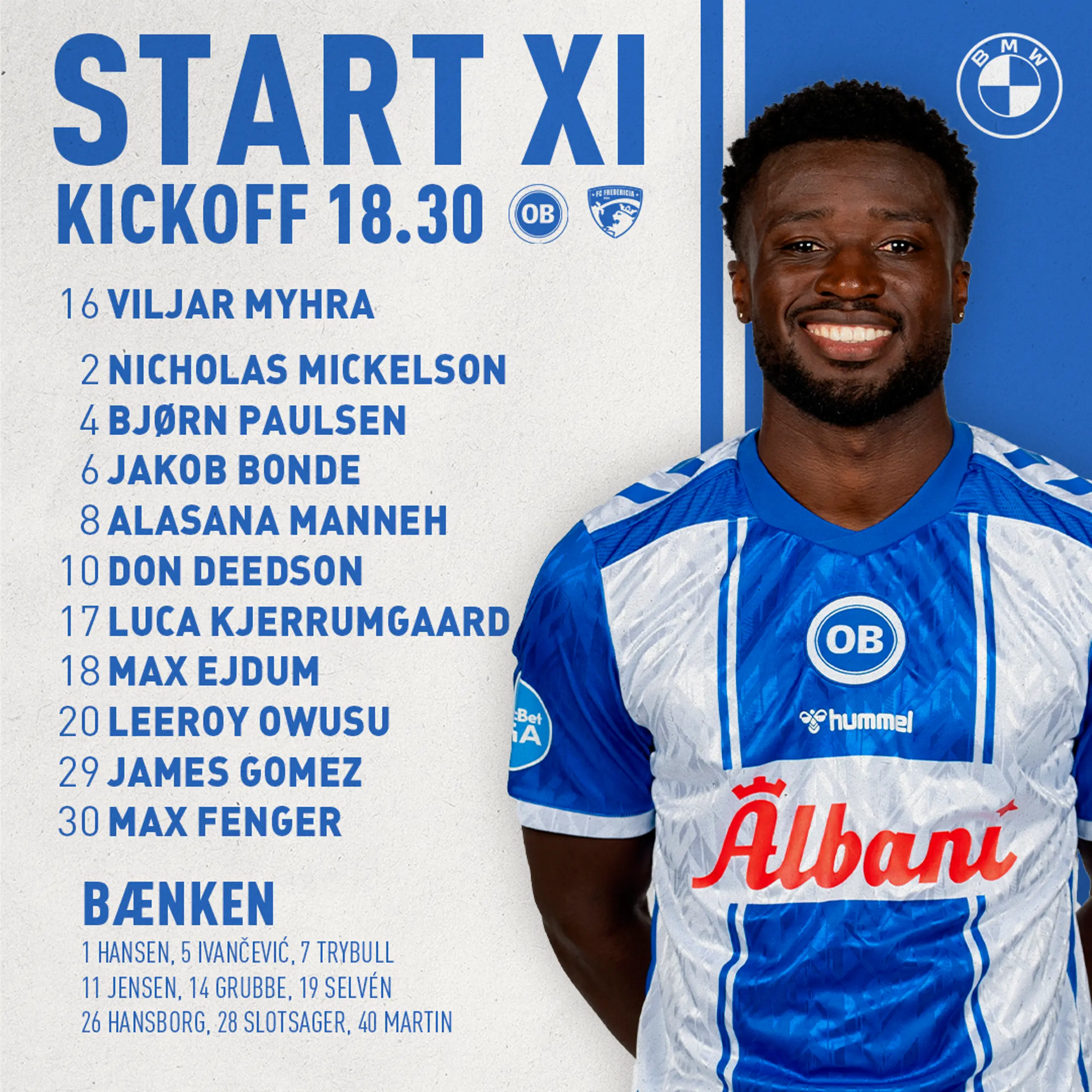 Sådan starter vi mod FC Fredericia 21.08.2024 15:30 En topkamp bliver blæst igang om en time, og her er de 11 striber, der står klar fra start til at kæmpe for Odense. Flere nyheder 3F Superliga Et point i vintervejret 24.11.2025 3F Superliga Sådan starter vi i Randers 24.11.2025 Nyhed Udsolgt klubaften 24.11.2025 3F Superliga Truppen til aftenens kamp i Randers 24.11.2025