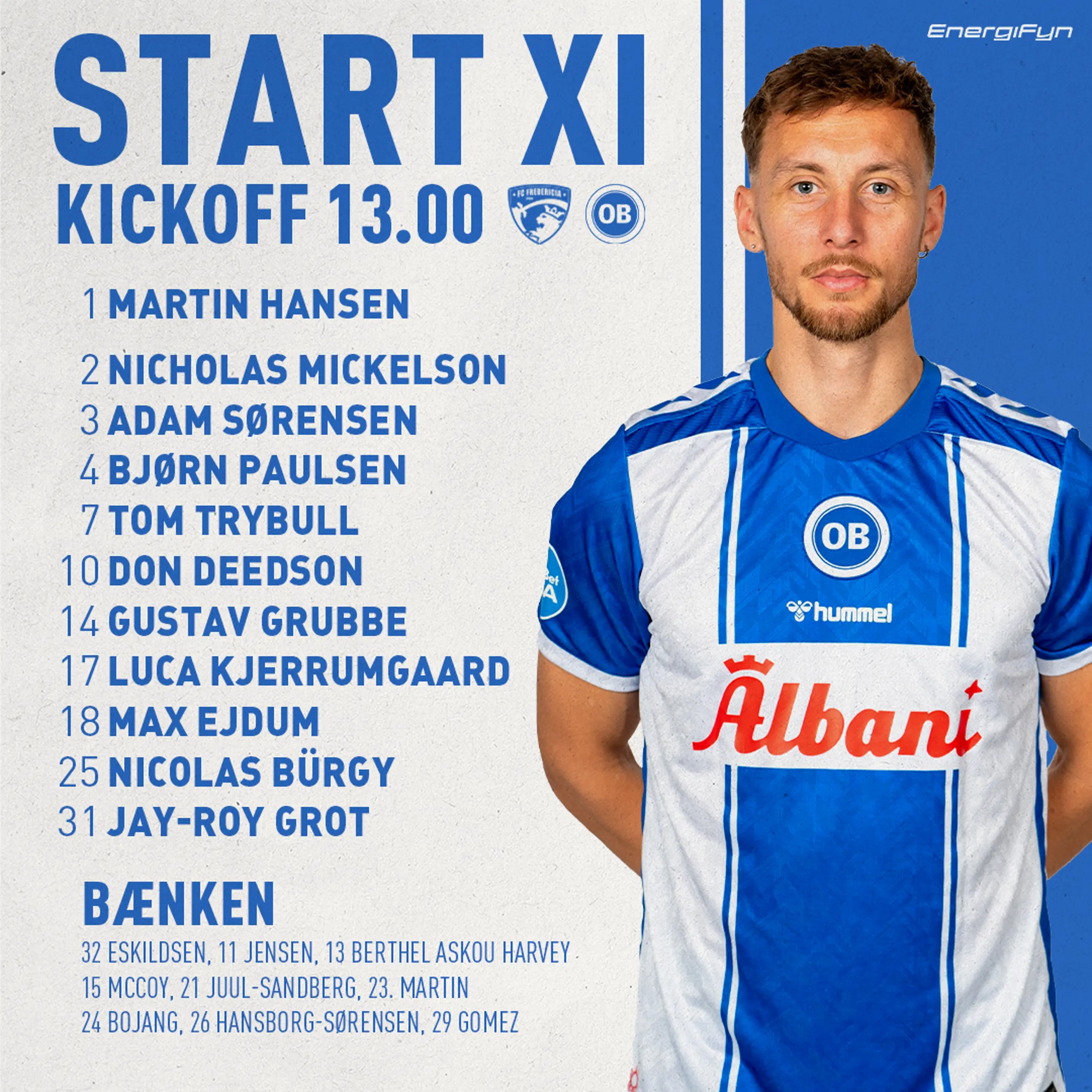 Startopstillingen til topopgøret 05.04.2025 09:57 Kl. 13.00 går det løs mod FC Fredericia på Monjasa Park, og trænerteamets udvalgte er nu klar. Flere nyheder 3F Superliga Intens hjemmekamp ender i pointdeler 07.11.2025 3F Superliga Sådan starter vi fredagsbraget 07.11.2025 Kvinder Ny duel mod FC Nordsjælland 07.11.2025 3F Superliga Truppen til fredagskampen 07.11.2025