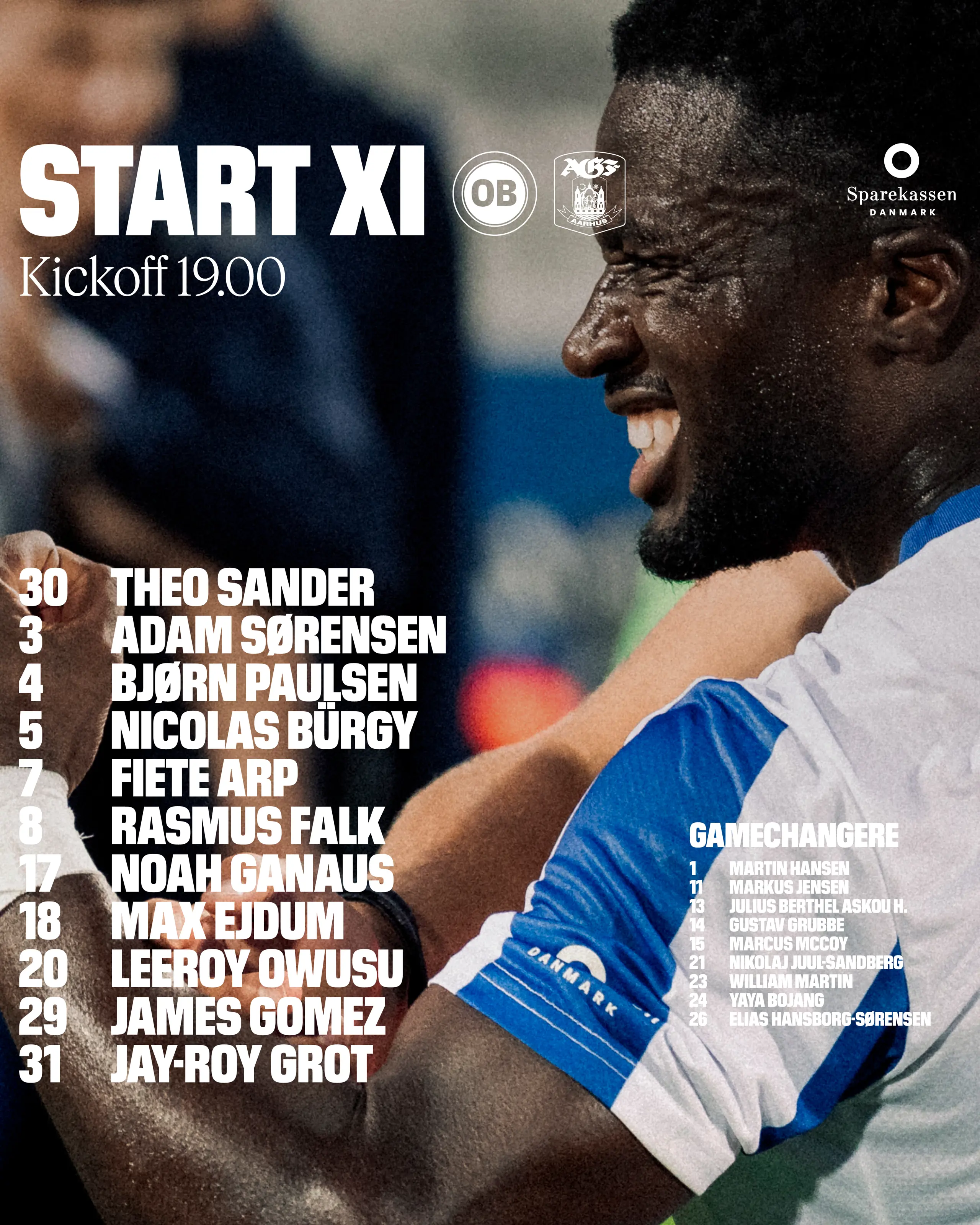 Sådan starter vi mod AGF 18.08.2025 16:00 Provinsklassikeren bliver sparket i gang på Nature Energy Park om en time, og Alexander Zorniger og hans team har udtaget dagens startopstilling, som ikke er ændret siden sejren over Randers FC. Flere nyheder Oddset Pokalen Efteråret slutter uden avancement i Oddset Pokalen 14.12.2025 Oddset Pokalen Startopstillingen til returopgøret 14.12.2025 Oddset Pokalen Truppen til årets sidste slag 14.12.2025 Oddset Pokalen Striberne tager føring med sig til Aarhus i Pokalen 12.12.2025