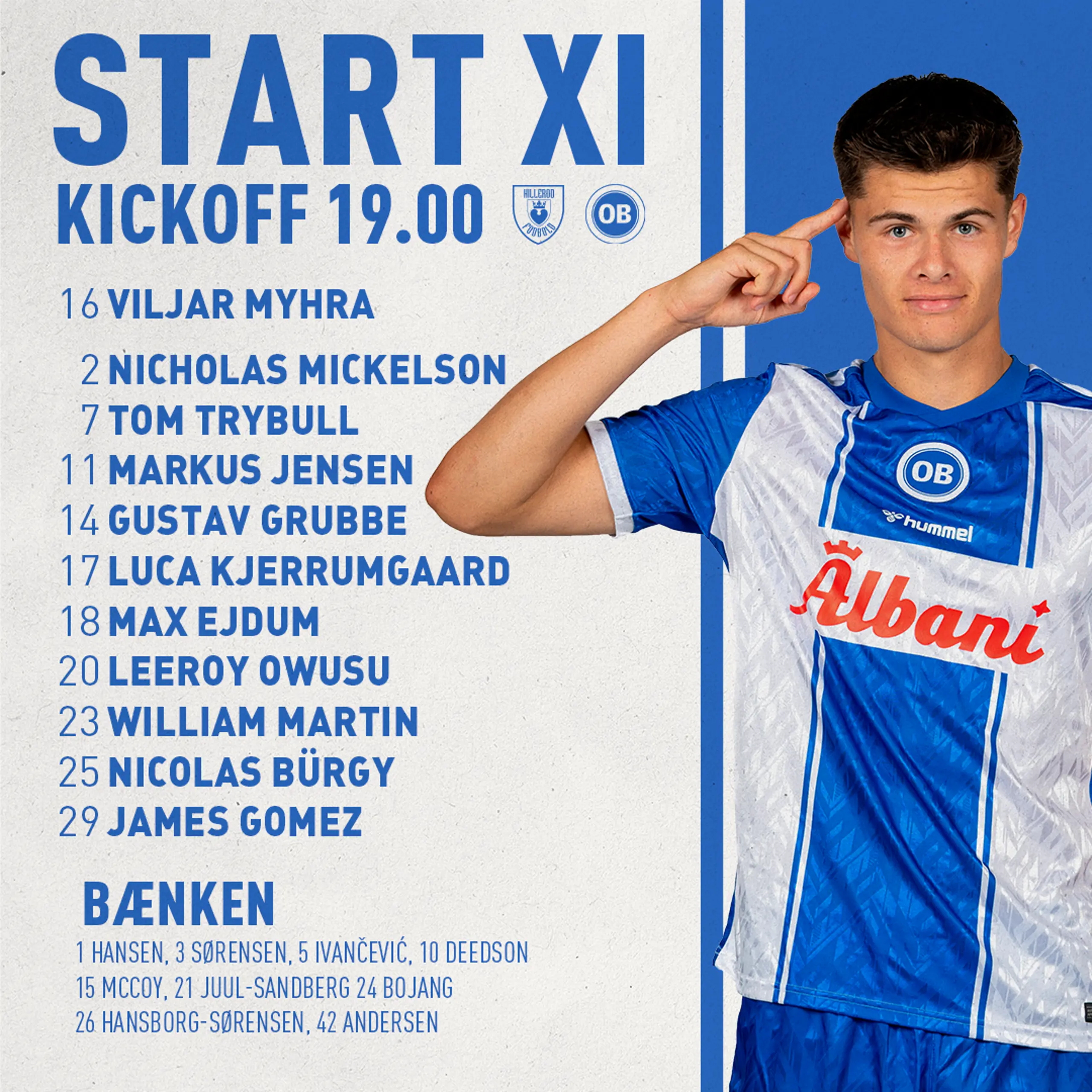 Forårets første startopstilling 21.02.2025 17:00 Forårspremieren står for døren, og om blot en time møder vi Hillerød Fodbold på Right to Dream Park. Søren Krogh og trænerteamet har udtaget de 11 striber, der starter inde for os. Flere nyheder 3F Superliga Et point i vintervejret 24.11.2025 3F Superliga Sådan starter vi i Randers 24.11.2025 Nyhed Udsolgt klubaften 24.11.2025 3F Superliga Truppen til aftenens kamp i Randers 24.11.2025