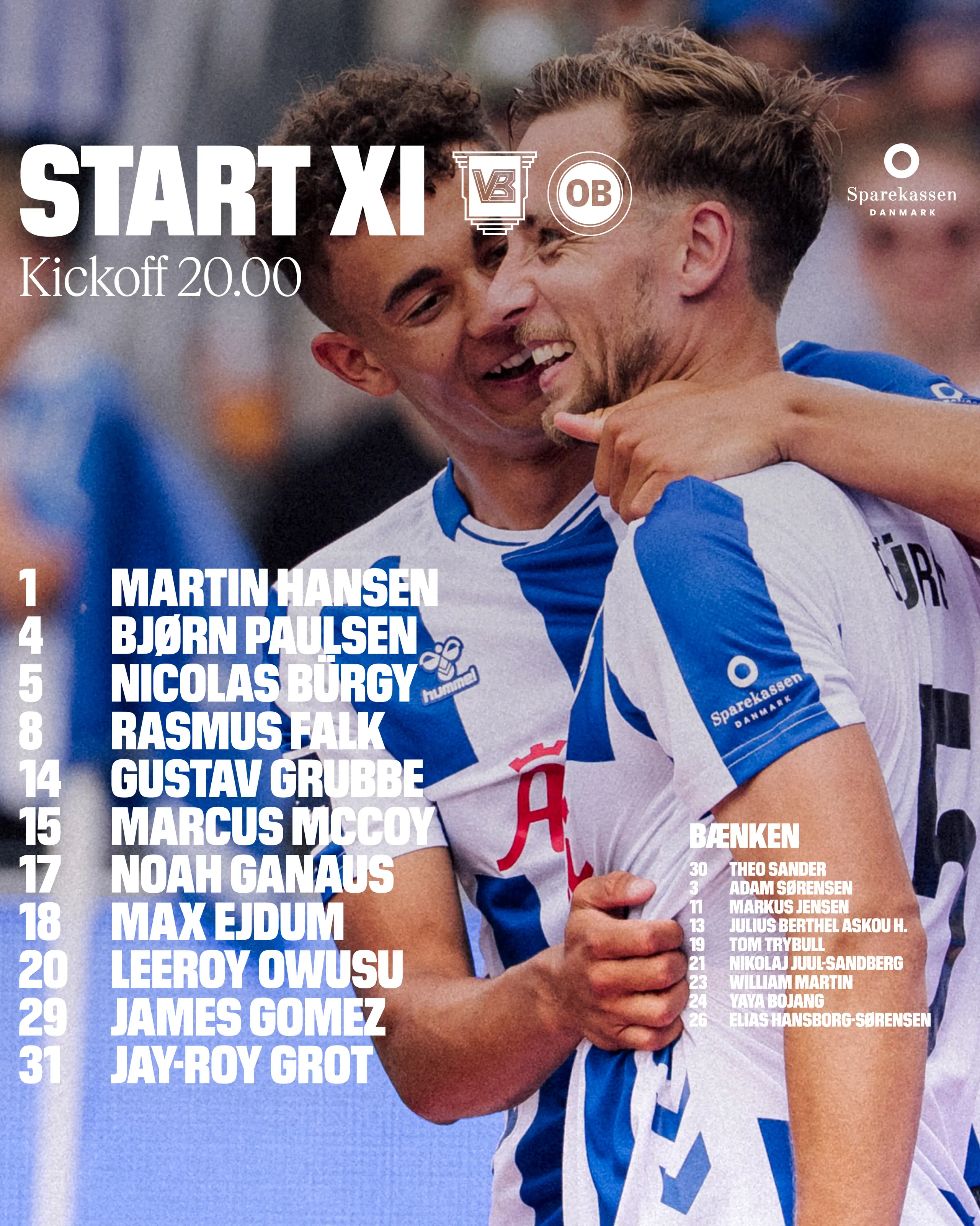 Startopstillingen mod Vejle Boldklub 01.08.2025 17:00 Om en time tager vihul på sæsonens anden udebanekamp, hvor vi forsøger at fortsætte den gode start på 3F Superligaen, og trænerteamet har netop offentliggjort deres 11 startende striber. Flere nyheder Nyt fra OB Lasse Legolas Embring Andersen er ny mand i førsteholdstruppen 17.12.2025 3F Superliga Kampprogram for resten af grundspillet i 3F Superliga 16.12.2025 Oddset Pokalen Efteråret slutter uden avancement i Oddset Pokalen 14.12.2025 Oddset Pokalen Startopstillingen til returopgøret 14.12.2025