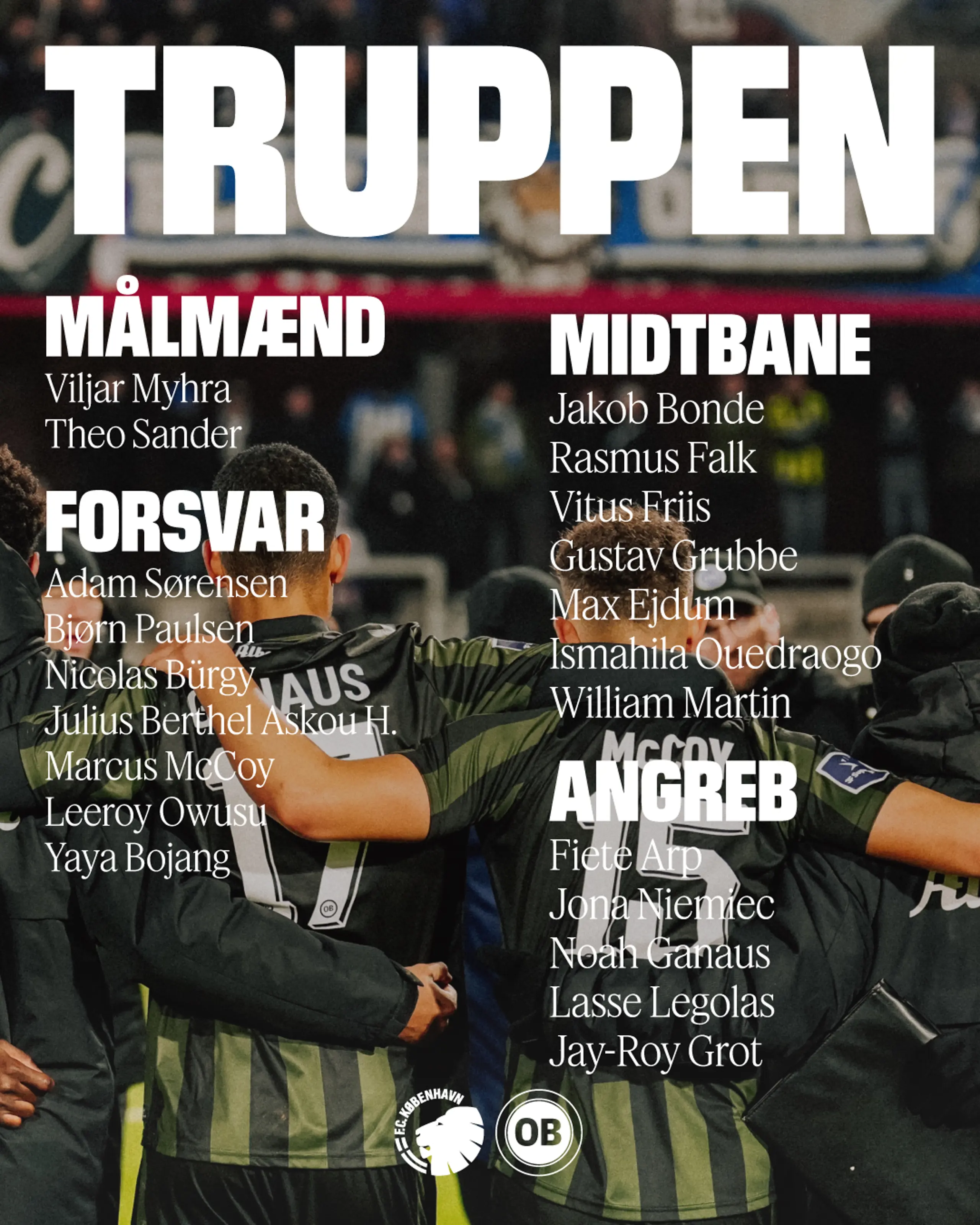 Med over 1.000 striber i ryggen drager vi i aften til Parken, hvor vi skal forsøge at hente point mod de danske mestre for fjerde gange i denne sæson. Alexander Zorniger har netop offentliggjort sin kamptrup.