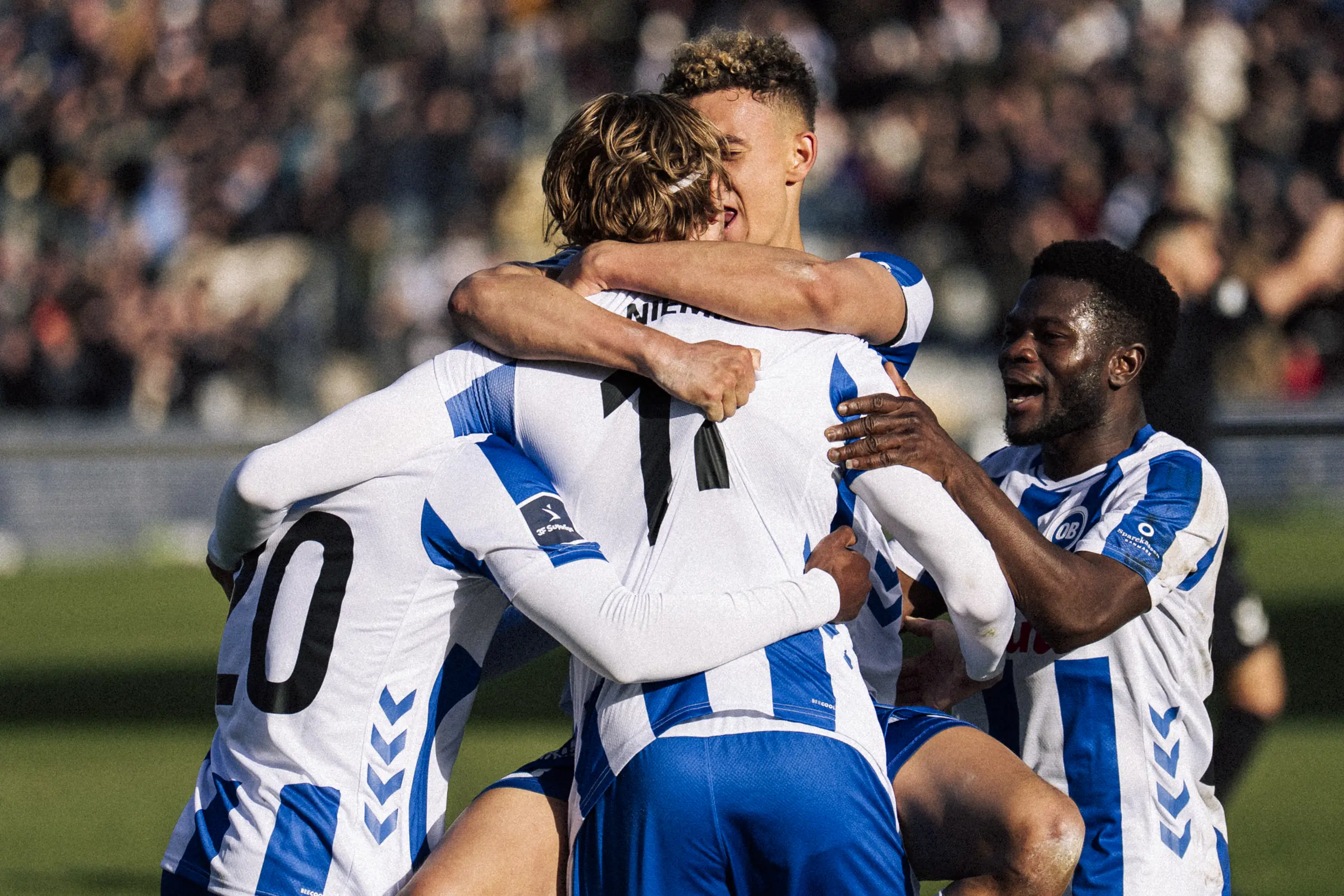 Efter 40 minutter måtte OB-fansene igen holde jubeludbruddet tilbage, da Max Ejdum sendte bolden på overlæggeren. Et stærkt chanceovertag til os i slutningen af 1. halvleg.