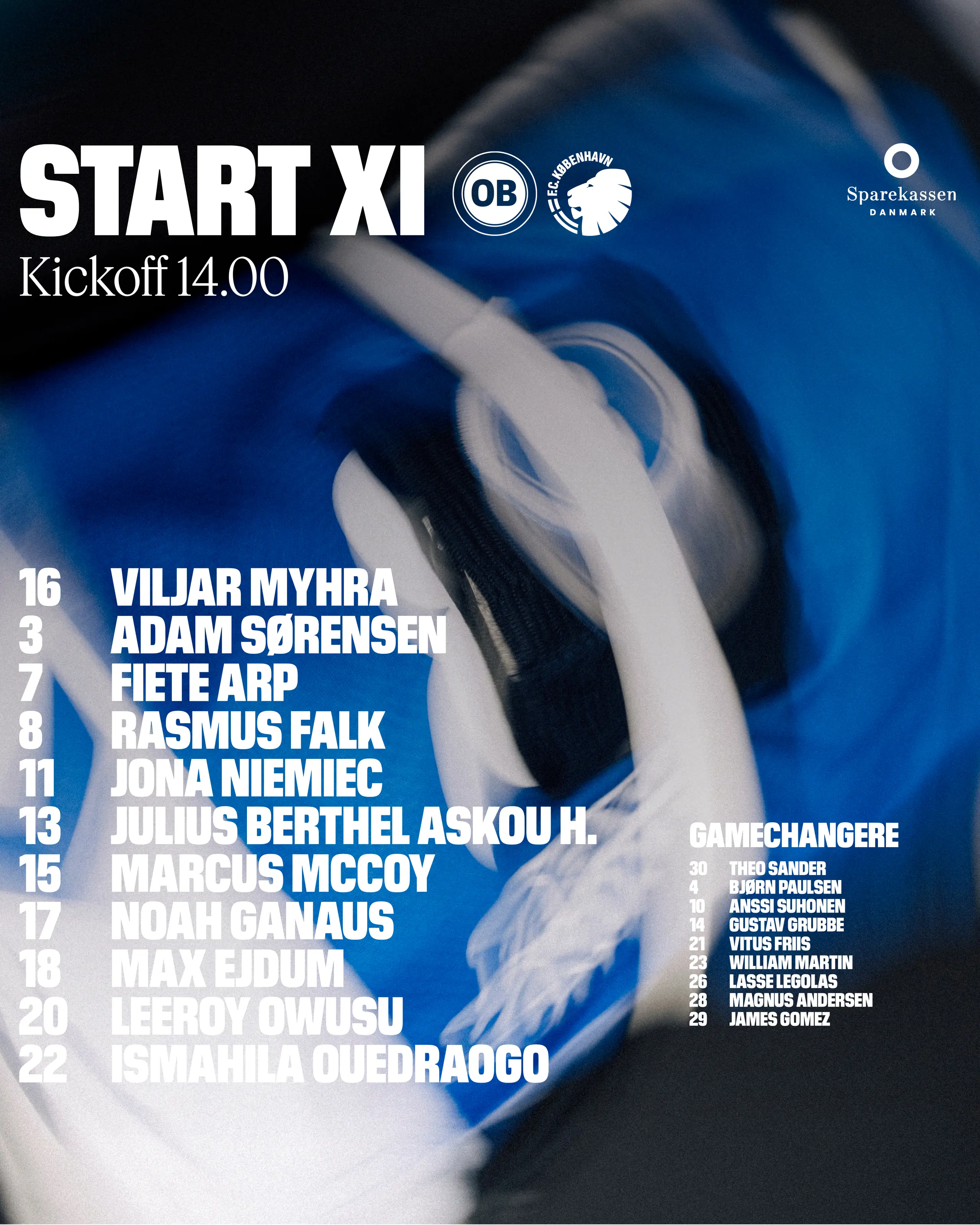 Sådan starter vi kampen 21.02.2026 12:00 Om en time går det løs på Nature Energy Park, hvor vi møder F.C. København, og træneren har udvalgt sine 11 startende striber. Flere nyheder 3F Superliga Truppen mod F.C. København 21.02.2026 3F Superliga Alle elsker at spille foran så mange mennesker 20.02.2026 3F Superliga Fanzonerne er klar til at varme dig op inden F.C. København-kamp 20.02.2026 Herrer Jay-Roy Grot udtages ikke til truppen lørdag mod F.C. København 19.02.2026