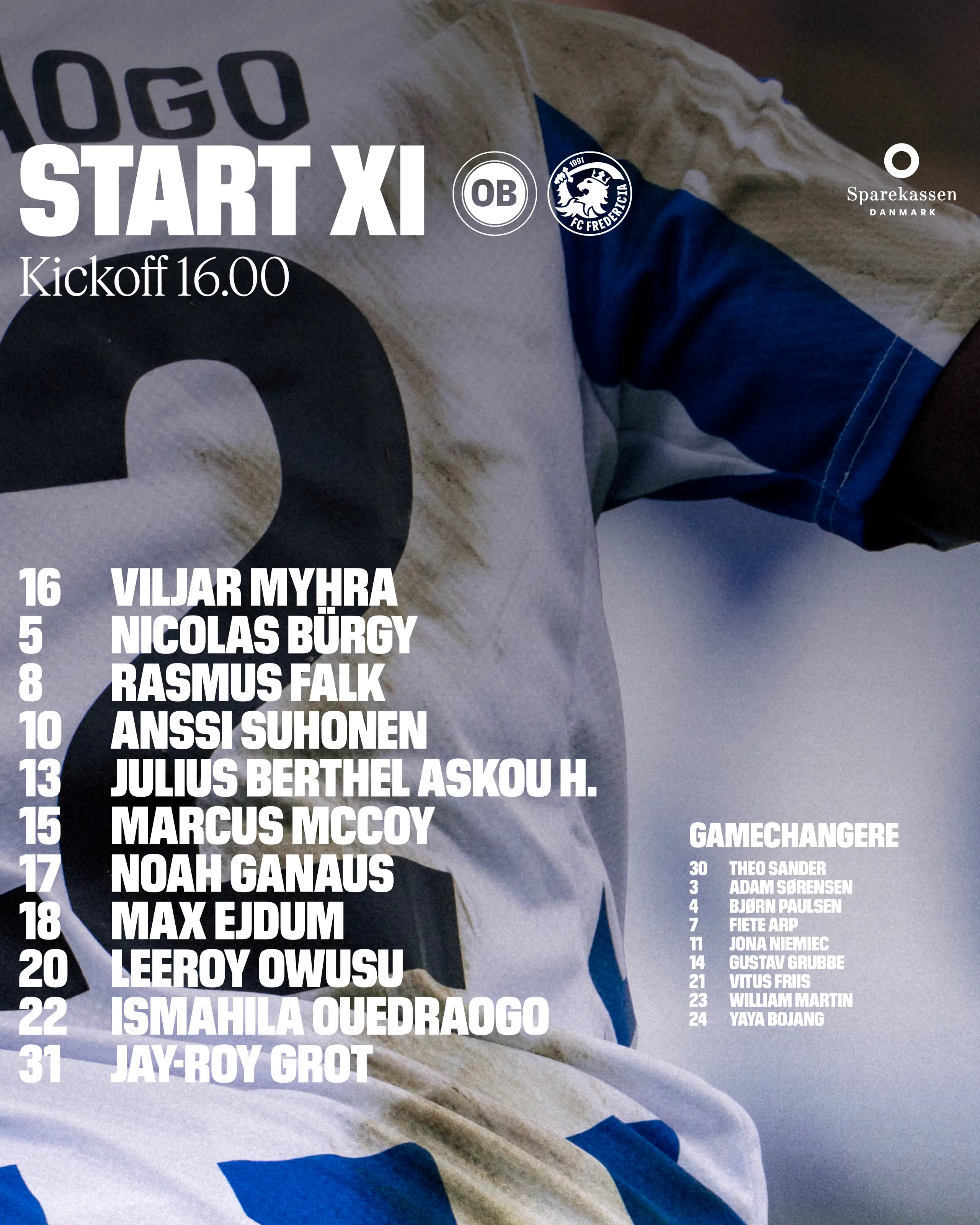 Startopstillingen mod FC Fredericia 06.04.2026 12:50 Om en time skyder vi dagens påskeopgør i gang på Nature Energy Park, og 11 striber er klar fra start. Flere nyheder 3F Superliga Sen scoring og en mirakelredning sikrer os tre point 06.04.2026 3F Superliga Truppen mod FC Fredericia 06.04.2026 3F Superliga - Vi håber virkelig, at hele Odense vil komme og kæmpe med os 05.04.2026 Kvinder - Det vigtigste er, at vi står tæt som hold og tror på det 03.04.2026